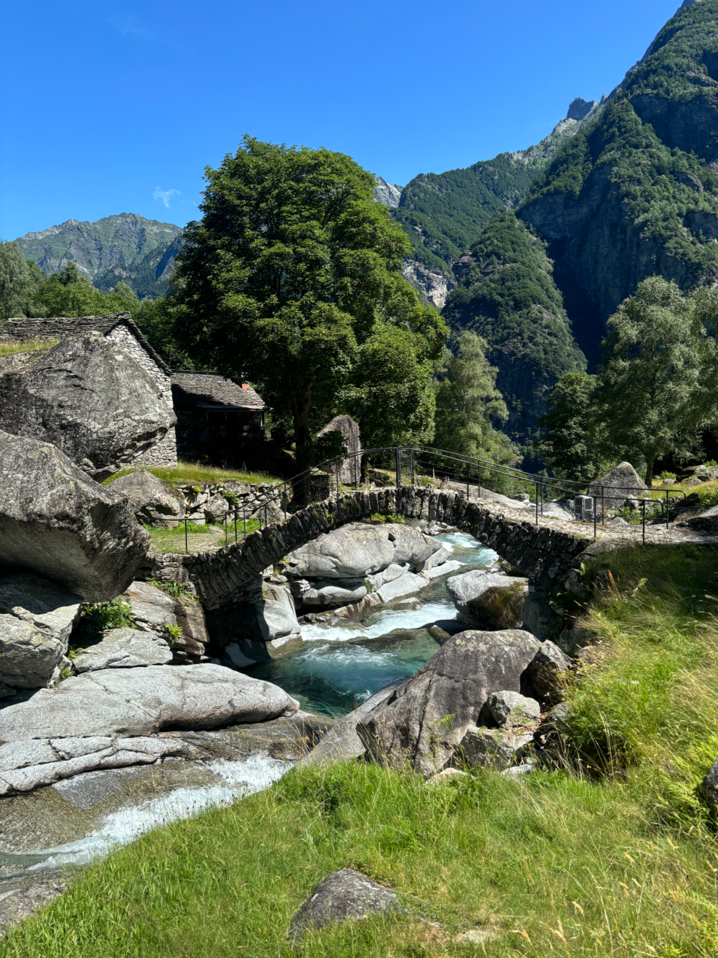 This is the perfect day trip! We traveled from Lugano by train to Locarno, and then took a one-hour bus ride to Cavergno and a 10 min. bus ride to Foroglio. (plan your trip her) From the village, there's a lovely trail leading up to a charming stone bridge, it truly feels like stepping into a fairytale.