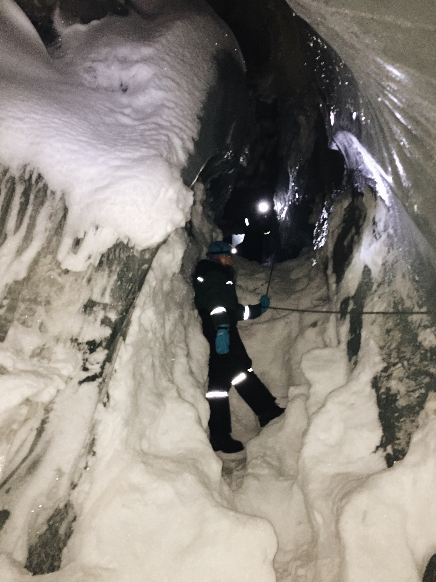 As we glided through the vast wilderness, surrounded by mountains and endless white landscapes, it felt like stepping into another world. After some time on the sled, we reached our destination: a hidden ice cave deep within the glacier.