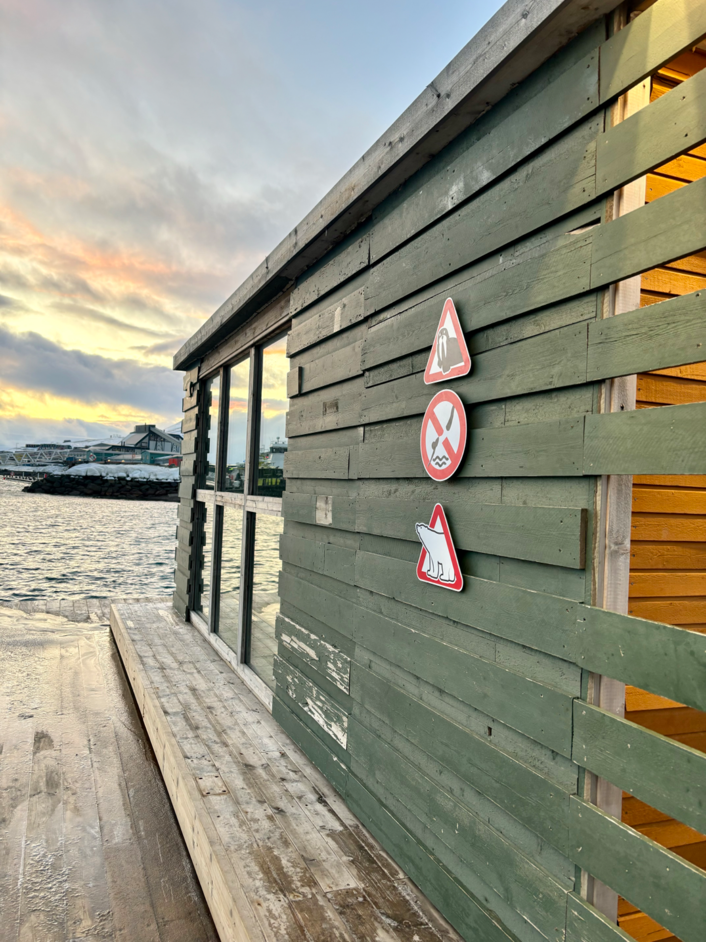As soon as you arrive, you really feel that you're on Svalbard, with warning signs for polar bears and walruses adding to the atmosphere. The view from the sauna is absolutely unreal.