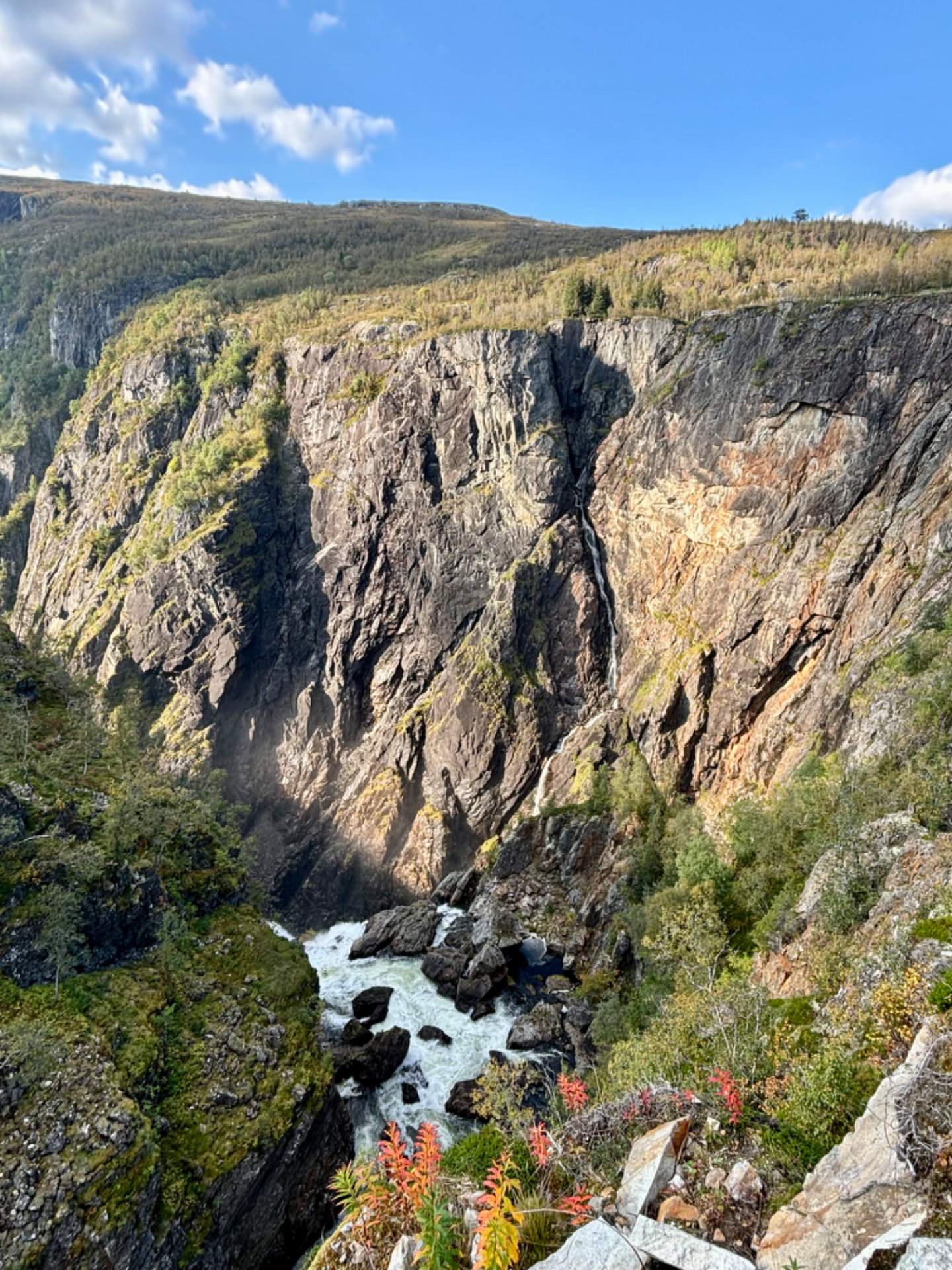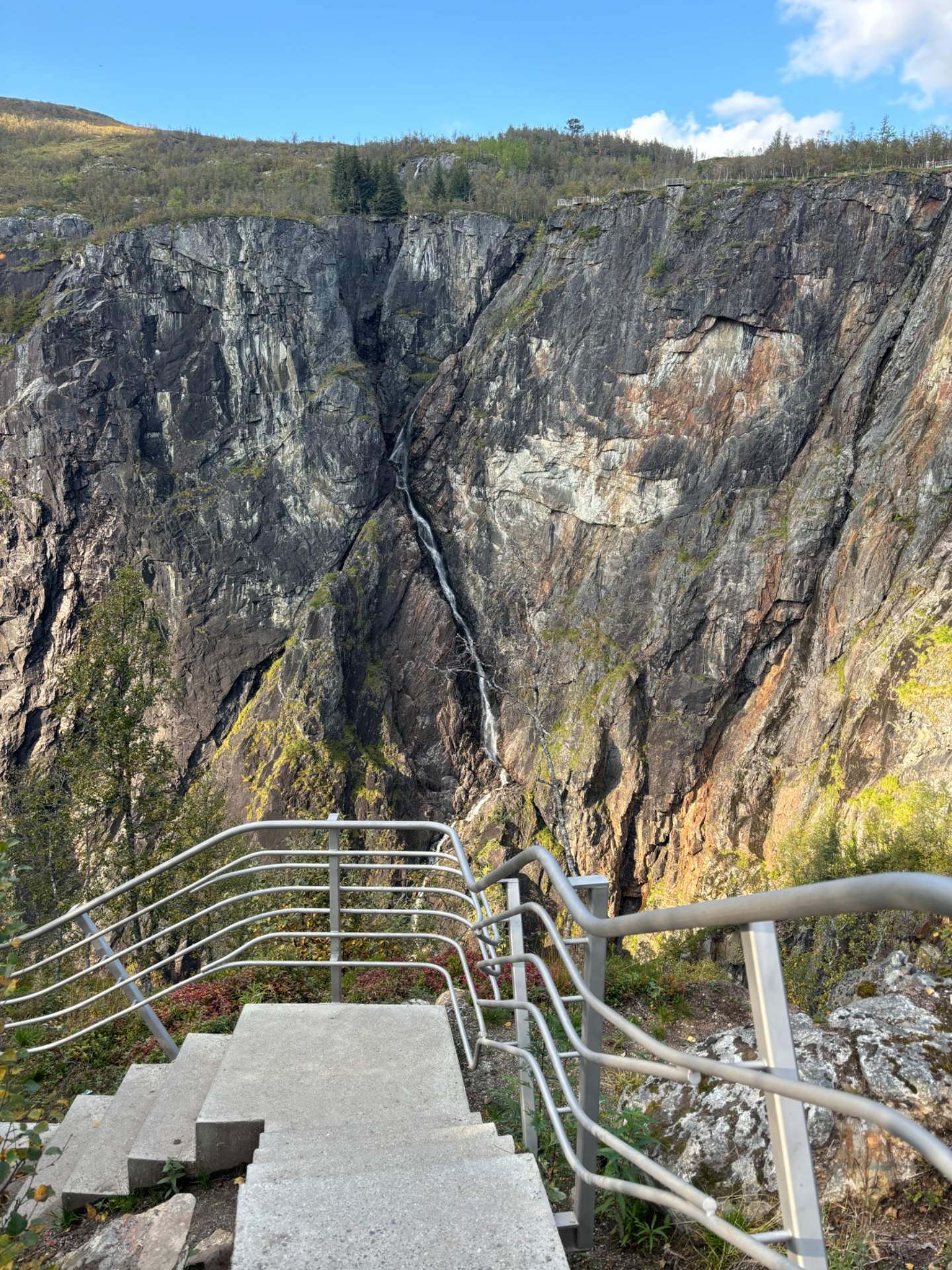 You will see an impressive waterfall of 145 meters vertically down into the valley below - and a total drop of 182 meters from the Hardangervidda plateau into Måbødalen. They have also built a fascinating staircase!